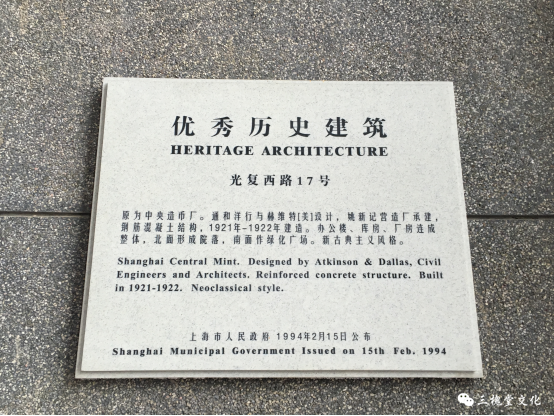 上海造币有限公司的前身是上海造币厂,始建于1920年,至今已有85年历史。是中国人民银行指定的造币厂,与沈阳造币厂、南京造币厂、深圳国宝造币厂是中华人民共和国四大造币厂之首。图上该建筑大楼已有近一个世纪的历史,且已成为文物保护单位。