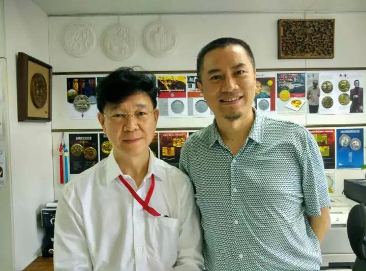 三槐堂文化董事长王伟先生(图右)与罗永辉大师(图左) 曾出任北京奥组委奖牌评审委员会评委,北京奥组委奖牌设计制作工作组专家。他的币章设计雕刻作品不胜枚举,件件精巧构思,工艺精湛,且往往具有颇高的艺术欣赏价值和收藏投资价值。