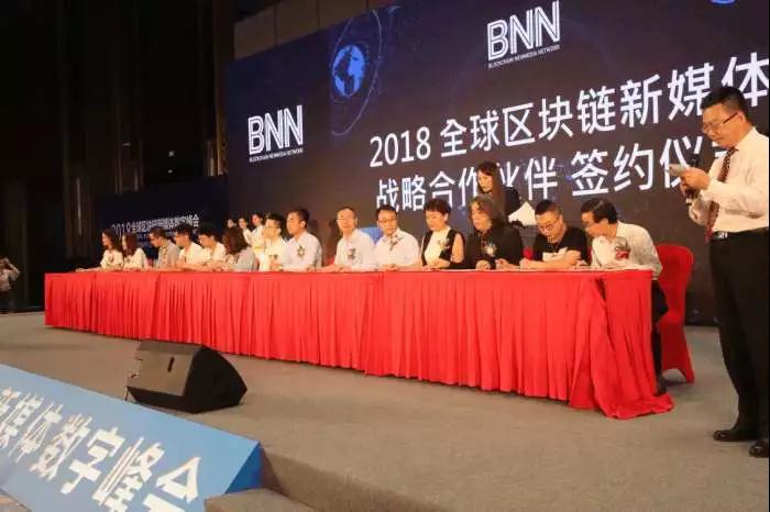 7月15日,由区块链新媒体有限公司(Blockchain Newmedia Network Pte. Ltd.简称BNN)主办,在沃特商学院、世界区块链组织(WBO)、区块链风云榜、布洛克科技、来电电影酒店集团、深圳煜新商业保理有限公司协办的《2018全球区块链新媒体数字高峰会》,于G20峰会会场——杭州国际博览中心向全球发声:全球首个媒体链即将诞生,打破媒体现有的困境,与众媒体迈向更美好的未来,打造“全民媒体”的理念。现场超过50家媒体签约成为战略合作伙伴,携手迎接革命性的新媒体4.0时代。