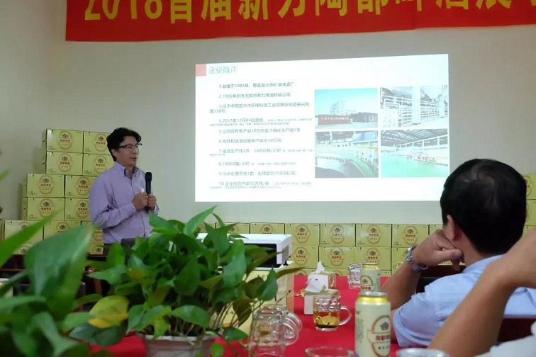 ▲ 新力啤酒有限公司总经理景新元先生详细阐述了新力啤酒的优势、特点以及未来发展。
