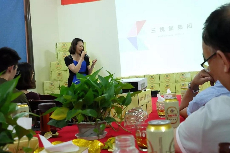 ▲ 无锡三槐堂文化发展有限公司市场部负责人江一帆女士详细介绍了三槐堂集团的发展历史。